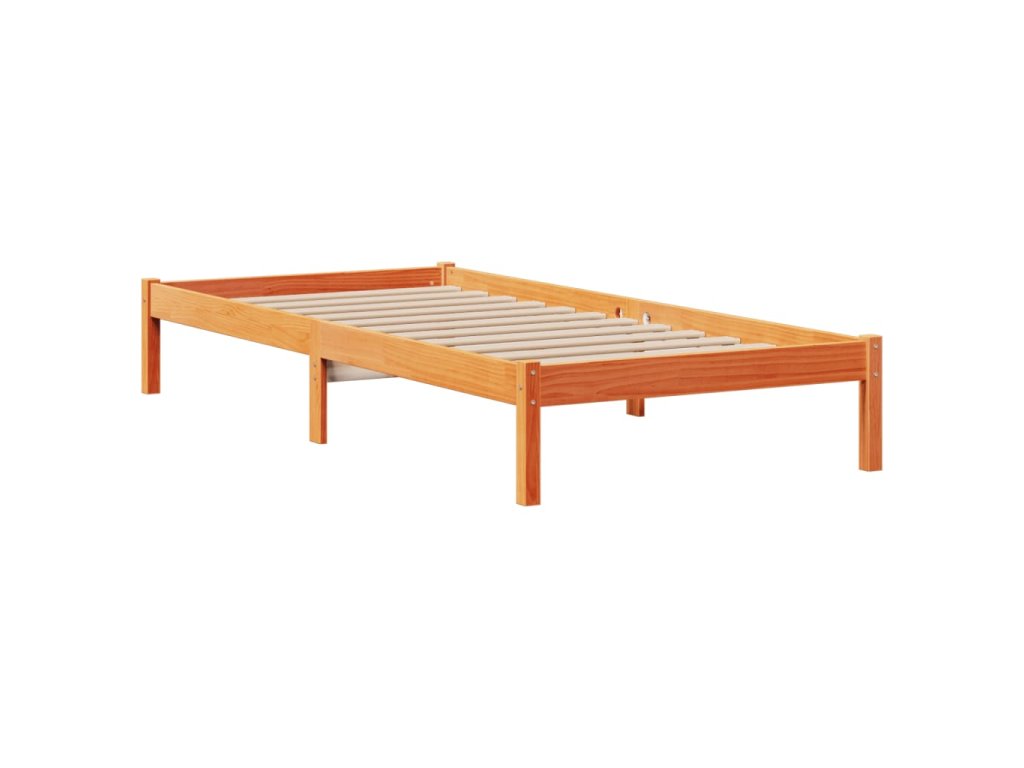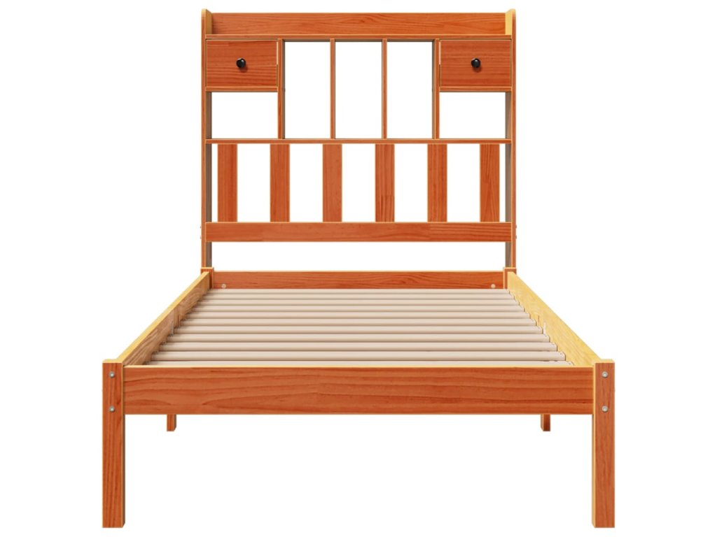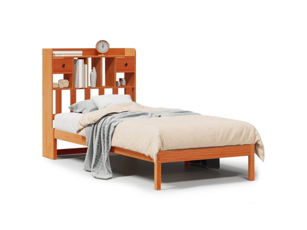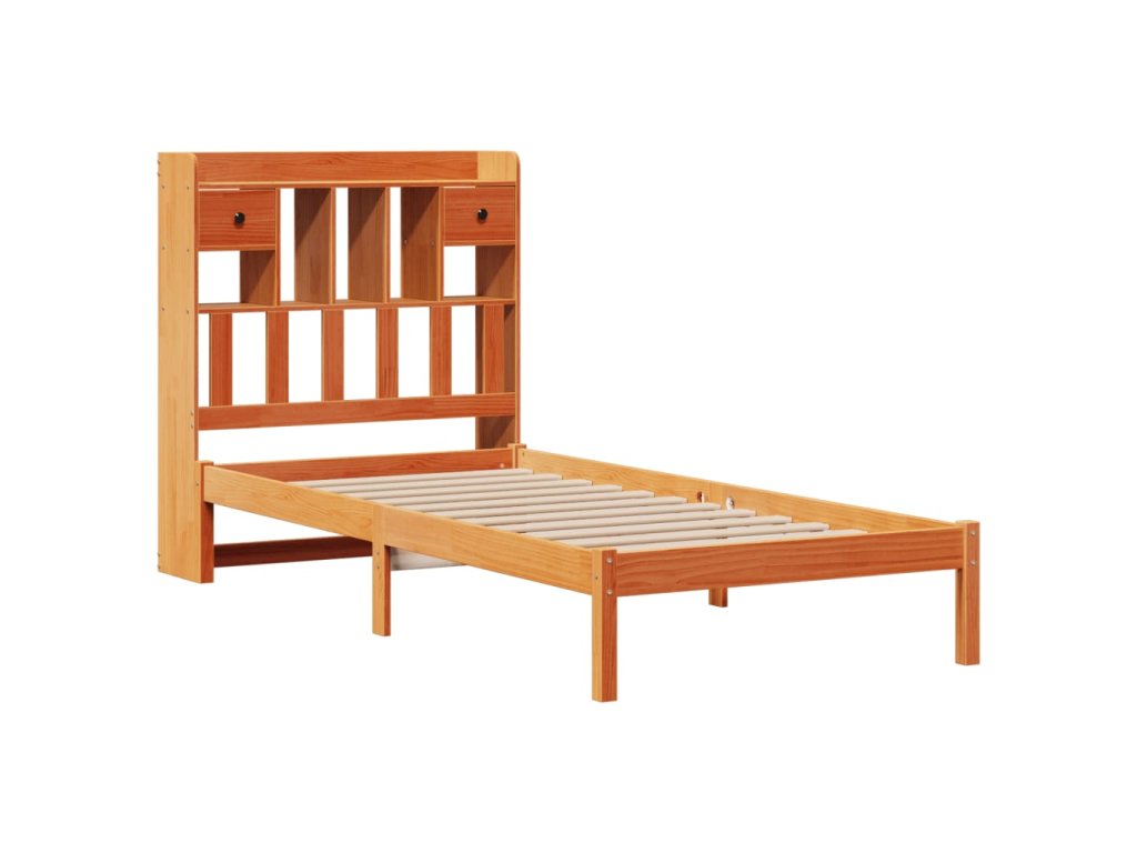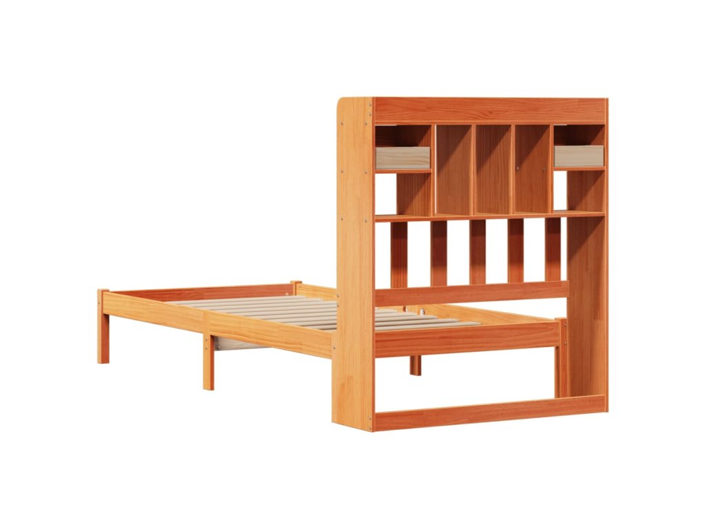 Postel s knihovnou bez matrace hnědá 100x200 cm masiv borovice 3321642