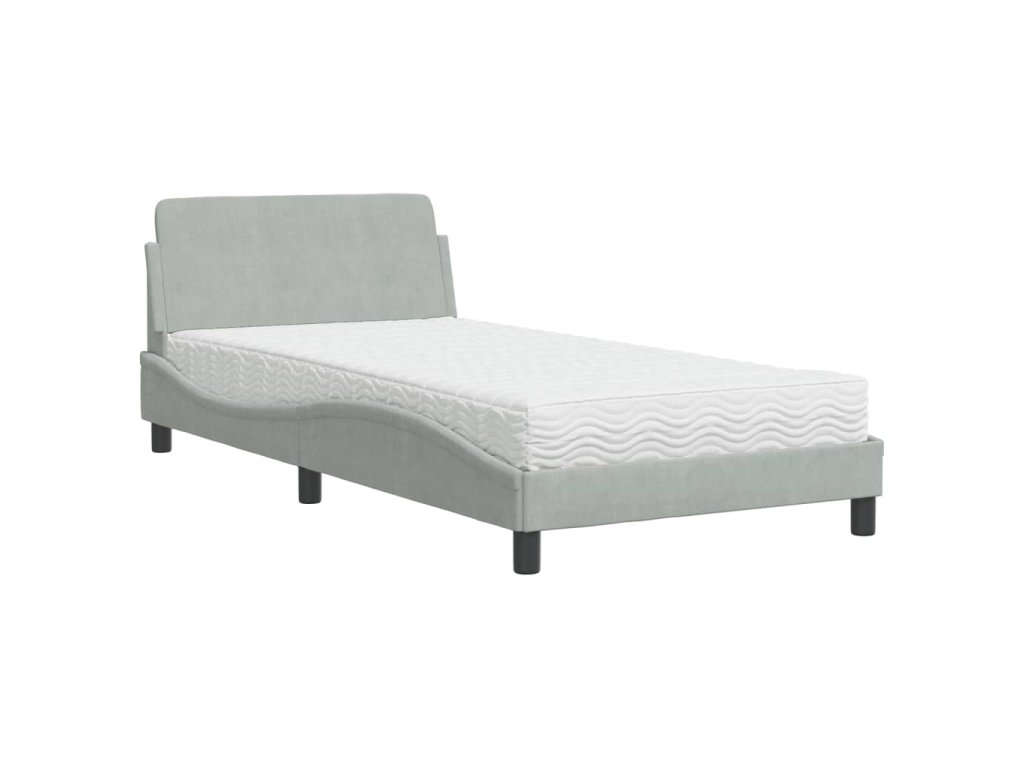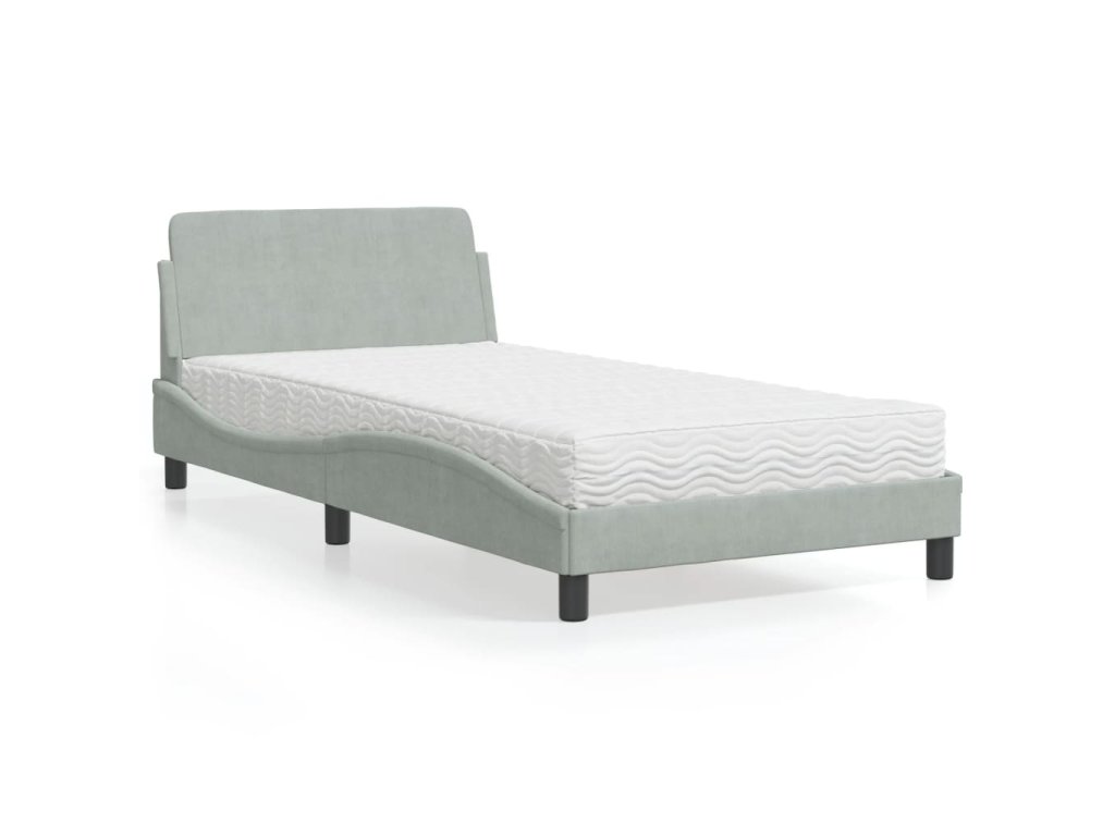 Postel s matrací Dover světle šedá 100 x 200 cm samet 3208351