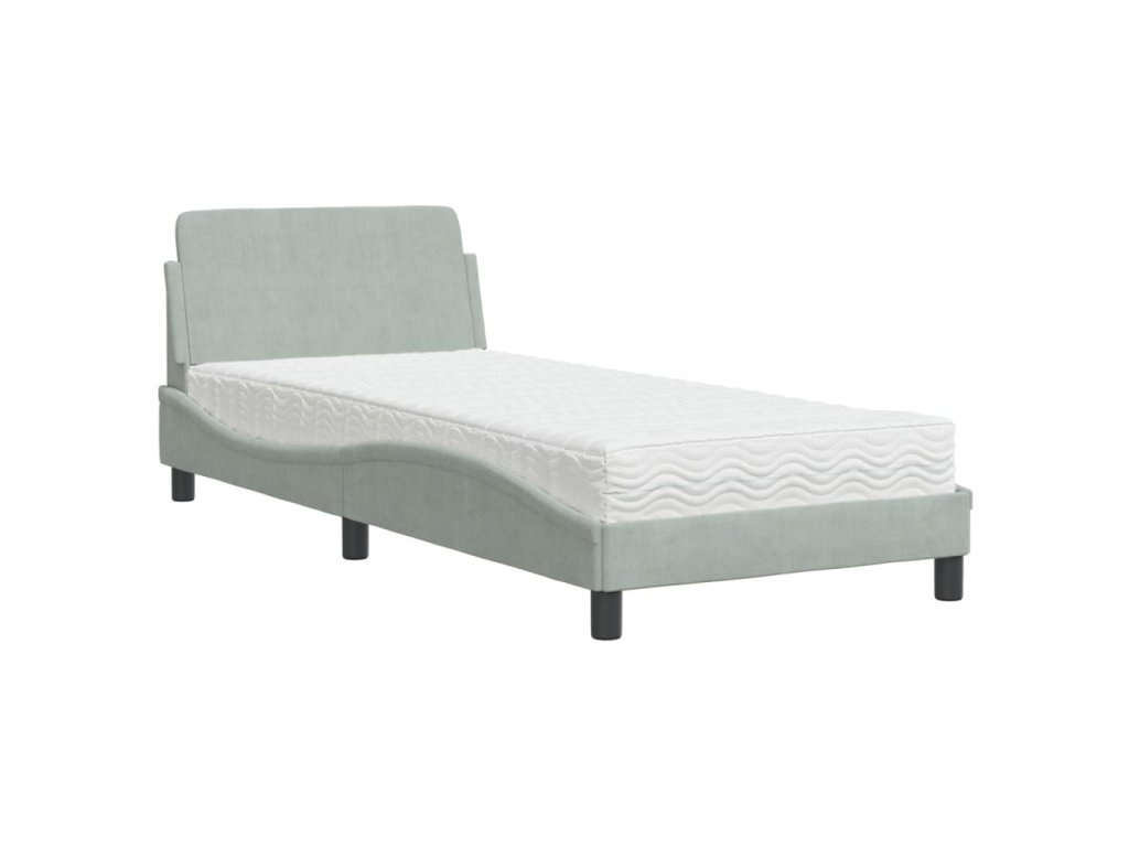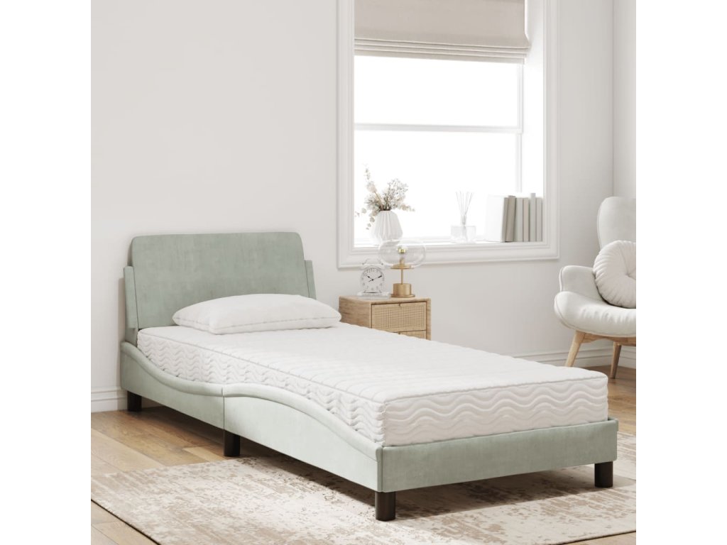 Postel s matrací Dover světle šedá 90 x 200 cm samet 3208331