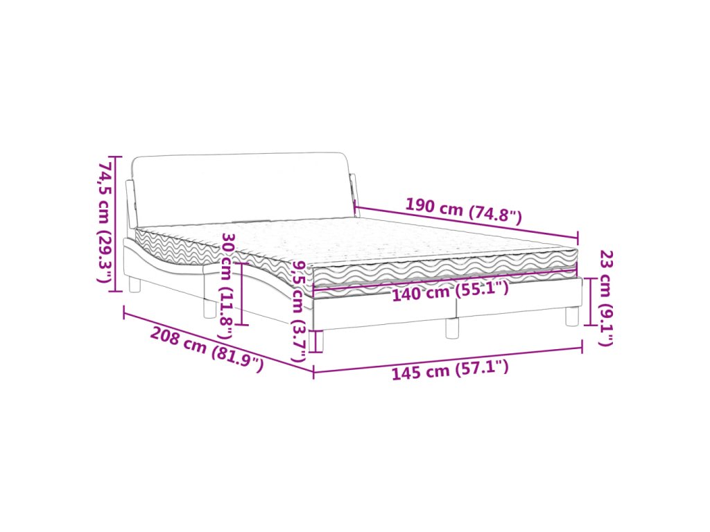 Postel s matrací Dover tmavě hnědá 140 x 190 cm textil 3208387