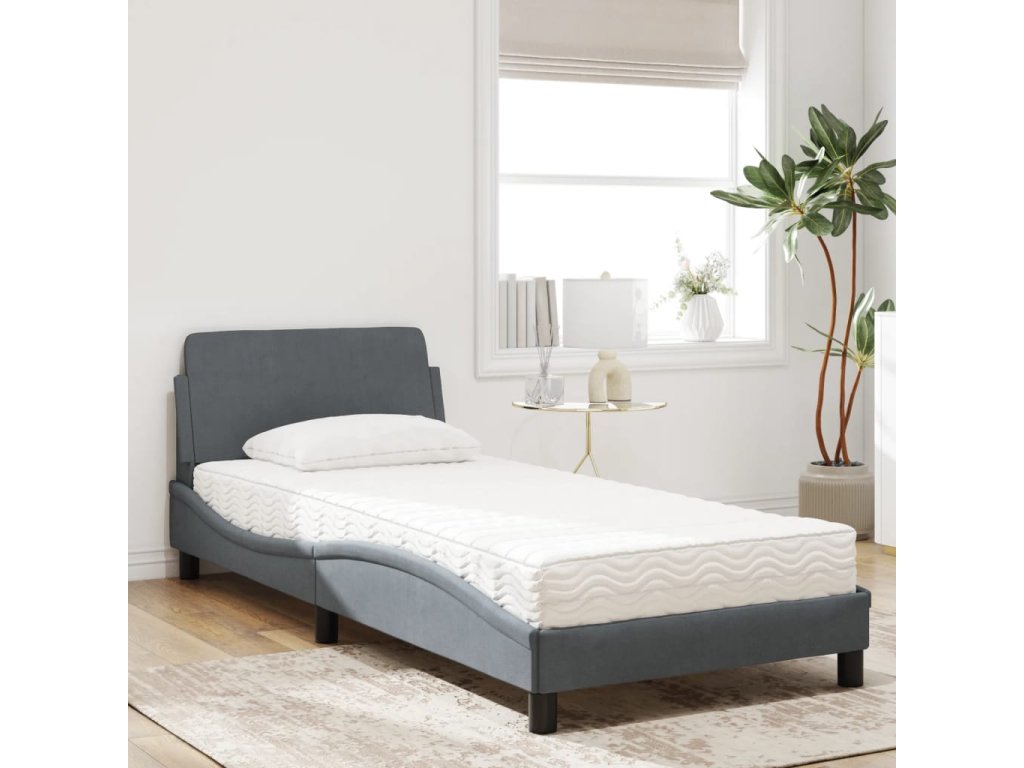 Postel s matrací Dover tmavě šedá 90 x 190 cm samet 3208312
