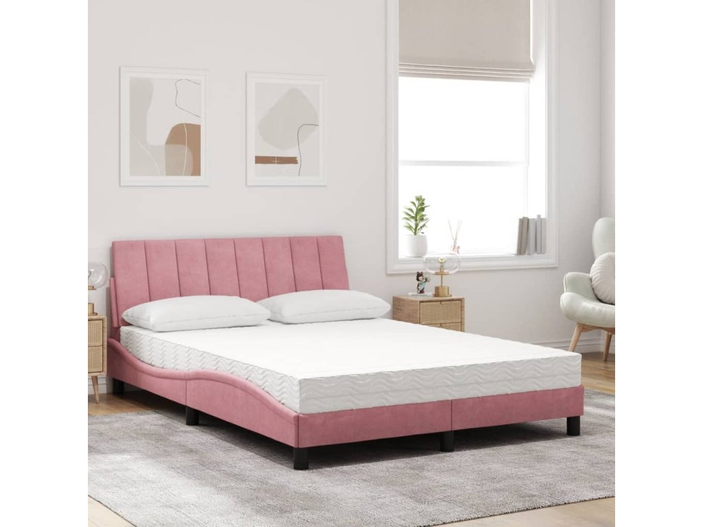 Postel s matrací Hanko růžová 140 x 190 cm samet 3208597