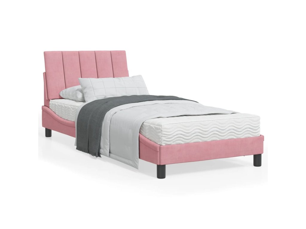 Postel s matrací Hanko růžová 90 x 190 cm samet 3208573