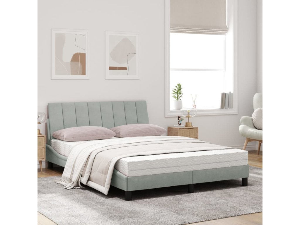 Postel s matrací Hanko světle šedá 120 x 200 cm samet 3208586