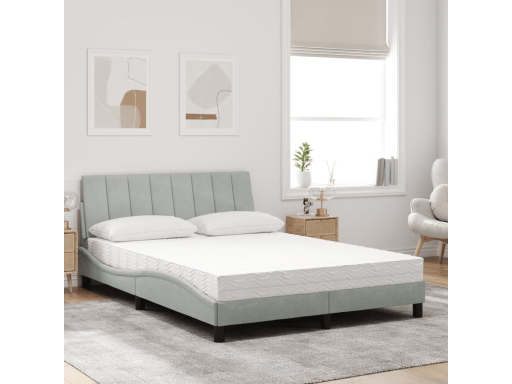 Postel s matrací Hanko světle šedá 140 x 190 cm samet 3208592