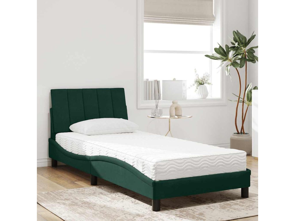 Postel s matrací Hanko tmavě zelená 90 x 190 cm samet 3208571
