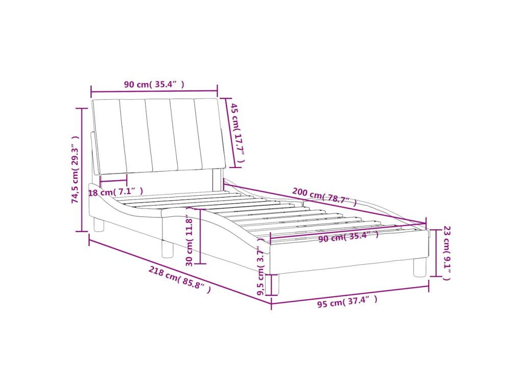 - Celkové rozměry: 218 x 95 x 74,5 cm (D x Š x V)