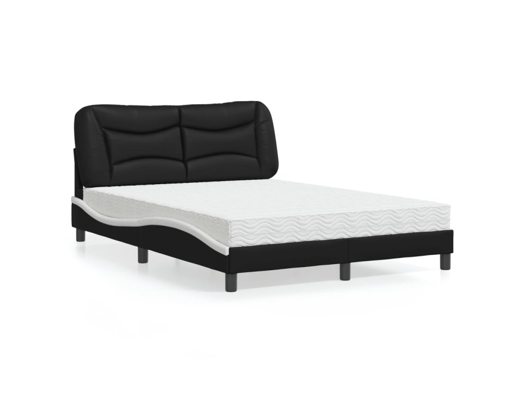 Postel s matrací Hvar černá a bílá 140 x 190 cm umělá kůže 3208722