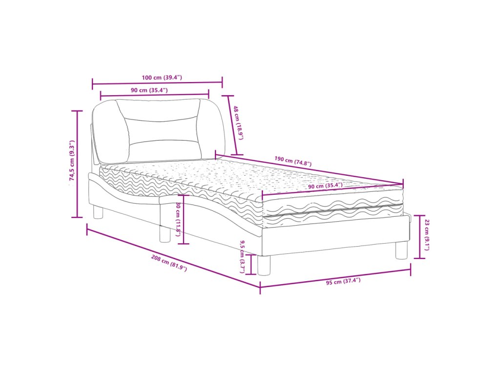 - Celkové rozměry: 208 x 95 x 74,5 cm (D x Š x V)