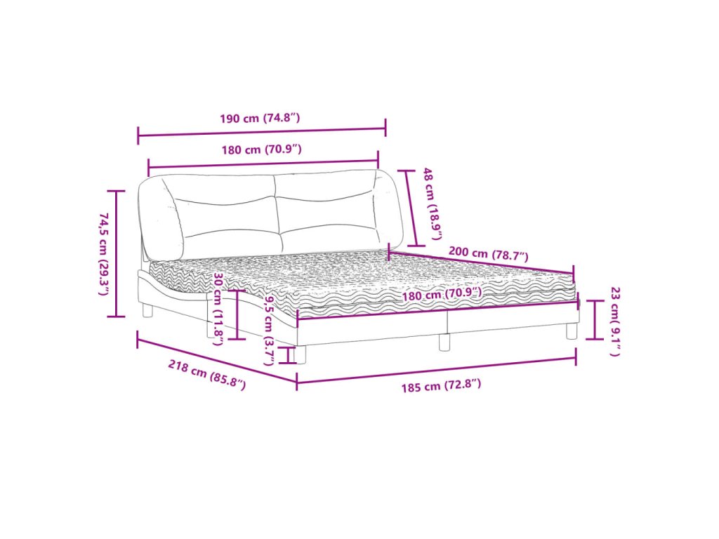 - Vlnitý boční design: Vlnitý vzhled postelového rámu je stylový a sofistikovaný, takže vašemu interiéru propůjčí moderní a elegantní nádech a stane se ústředním bodem vaší ložnice.