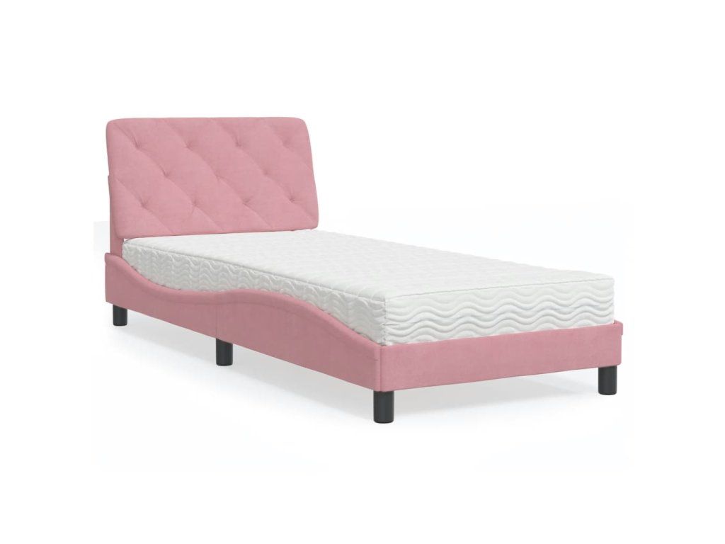 Postel s matrací růžová 80 x 200 cm samet 3208627