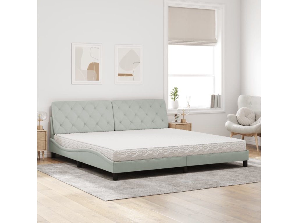 Postel s matrací světle šedá 200 x 200 cm samet 3208676