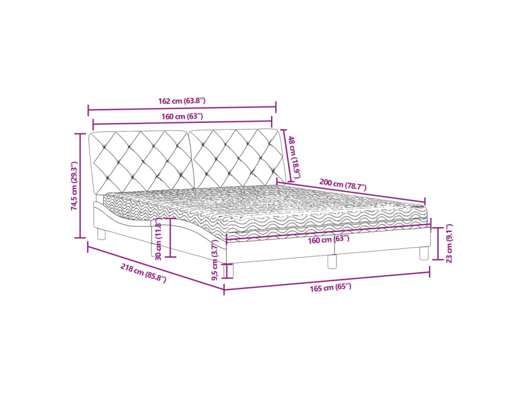 - Celkové rozměry: 218 x 165 x 74,5 cm (D x Š x V)