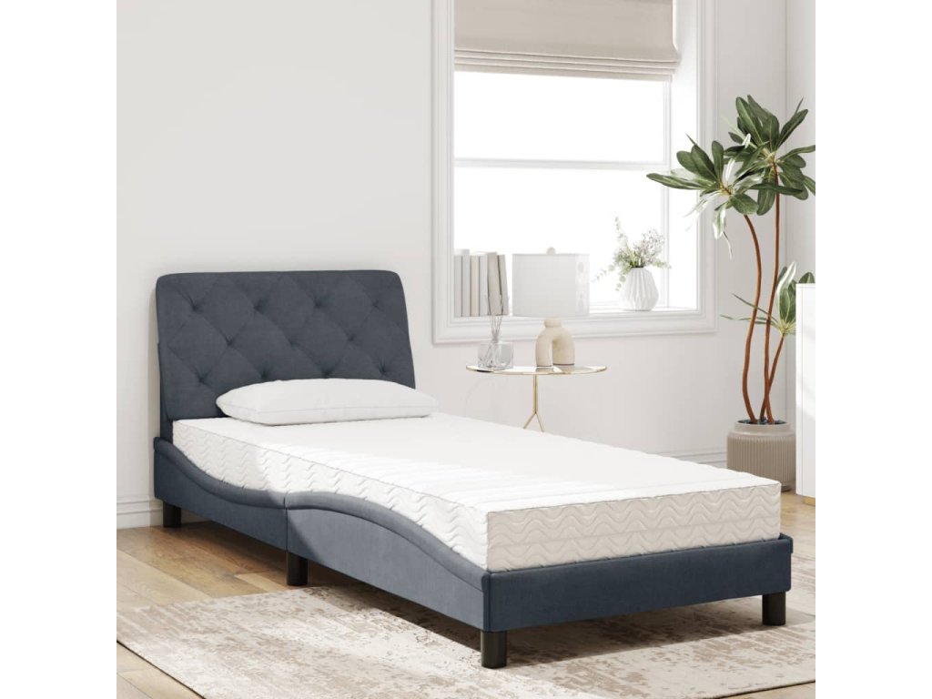 Postel s matrací tmavě šedá 90 x 200 cm samet 3208635