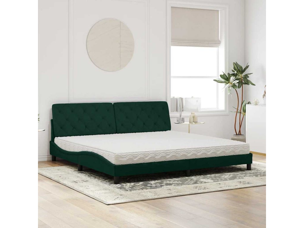 Postel s matrací tmavě zelená 200 x 200 cm samet 3208679