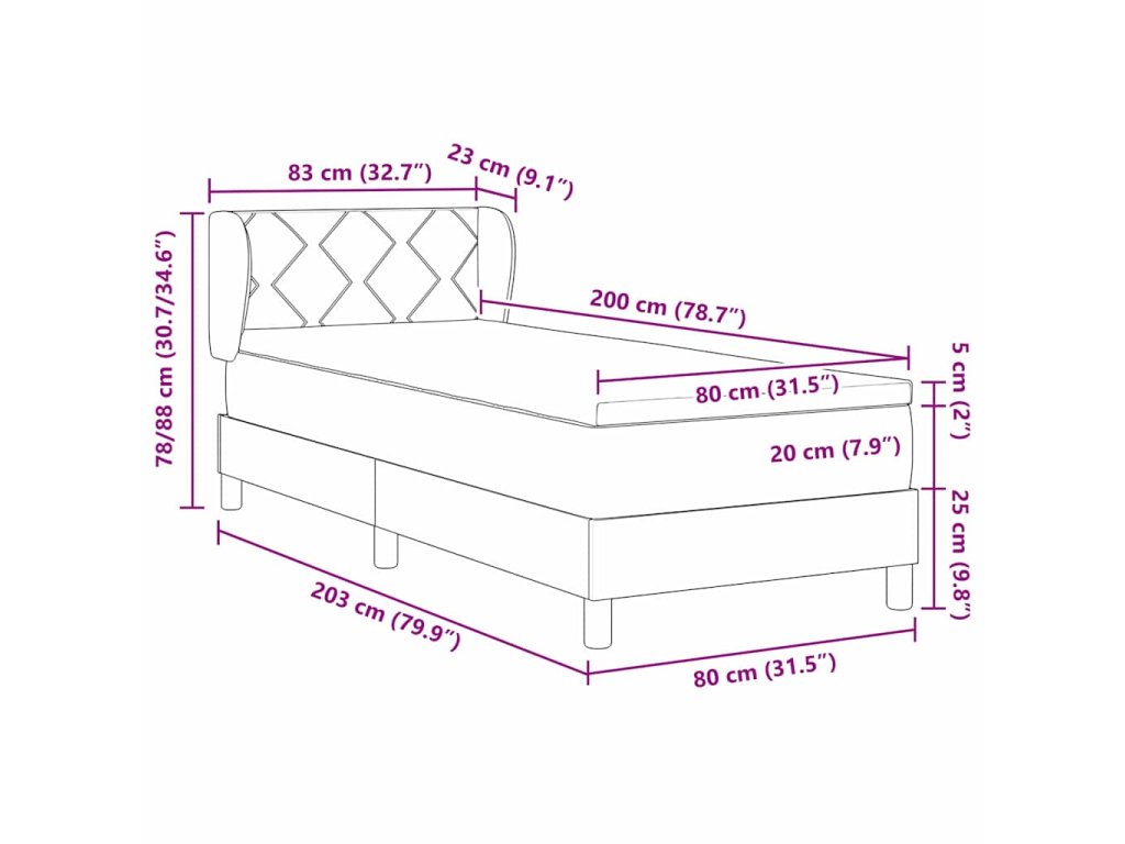- Velikost matrace: Malé jednolůžko (80 cm x 200 cm nebo 31" x 79")
