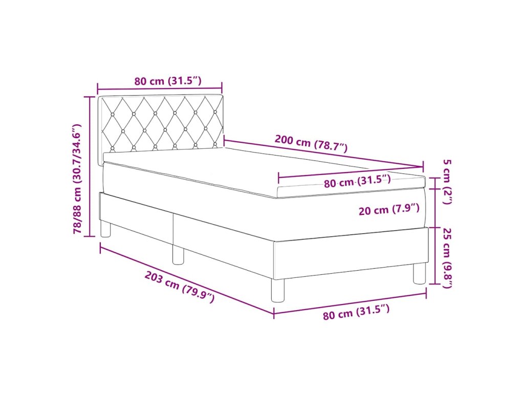 - Velikost matrace: Malé jednolůžko (80 cm x 200 cm nebo 31" x 79")