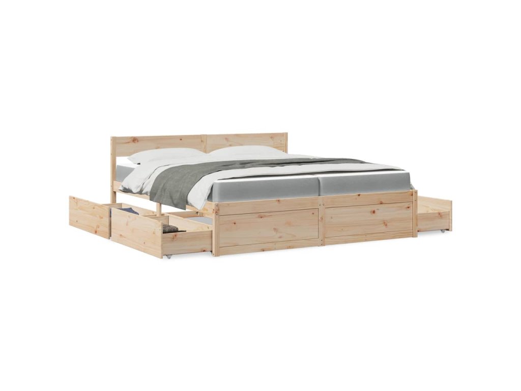 Postel se zásuvkami a matrací 200 x 200 cm masivní borovice 3281886