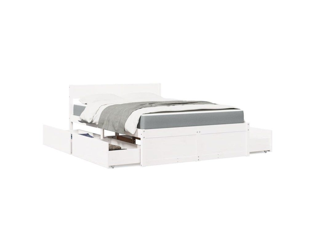 Postel se zásuvkami a matrací bílá 120x200 cm masivní borovice 3281902