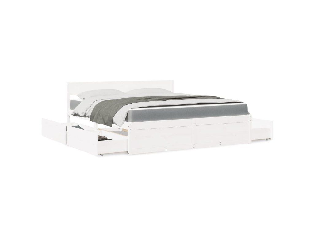 Postel se zásuvkami a matrací bílá 180x200 cm masivní borovice 3281890