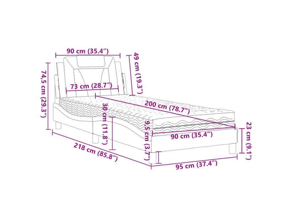 - Celkové rozměry: 218 x 95 x 74,5 cm (D x Š x V)