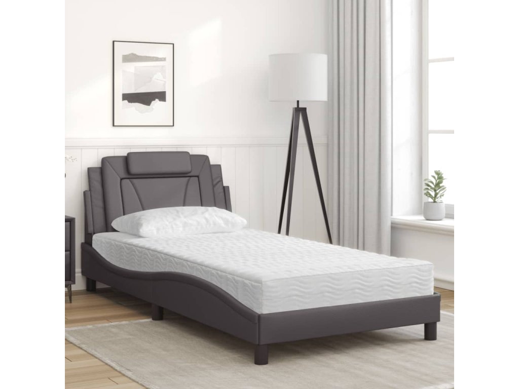 Postel Viana s matrací šedá 100 x 200 cm umělá kůže 3208778
