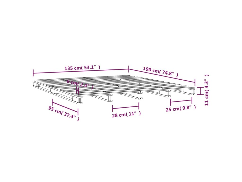Postel z palet 135 x 190 cm masivní borovice Double 821432