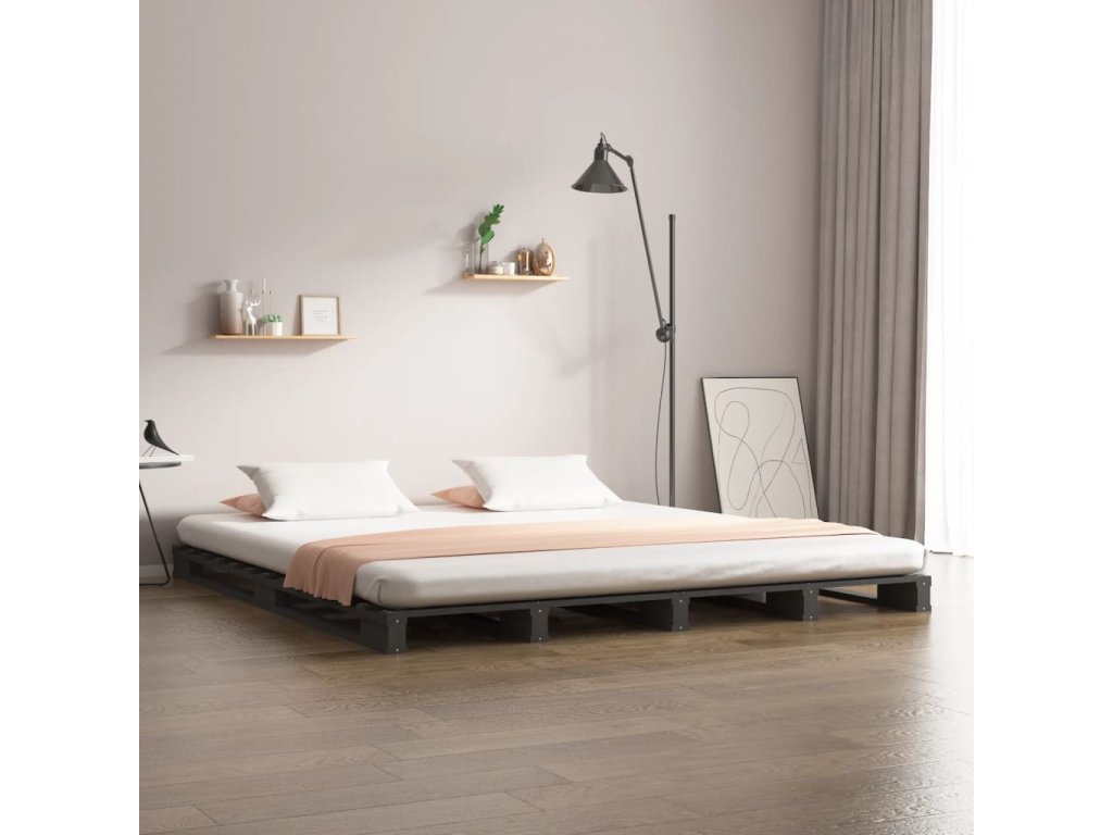 Postel z palet šedá 120 x 190 cm masivní borovice Small Double 821429