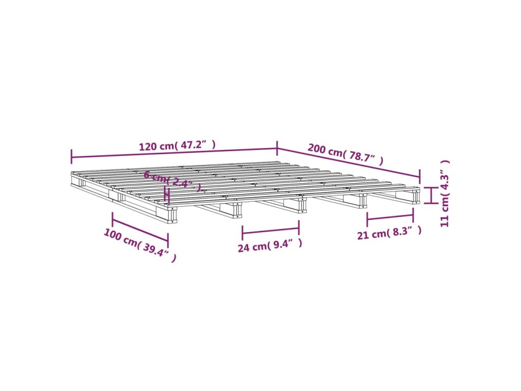 Postel z palet šedá 120 x 200 cm masivní borové dřevo 821389