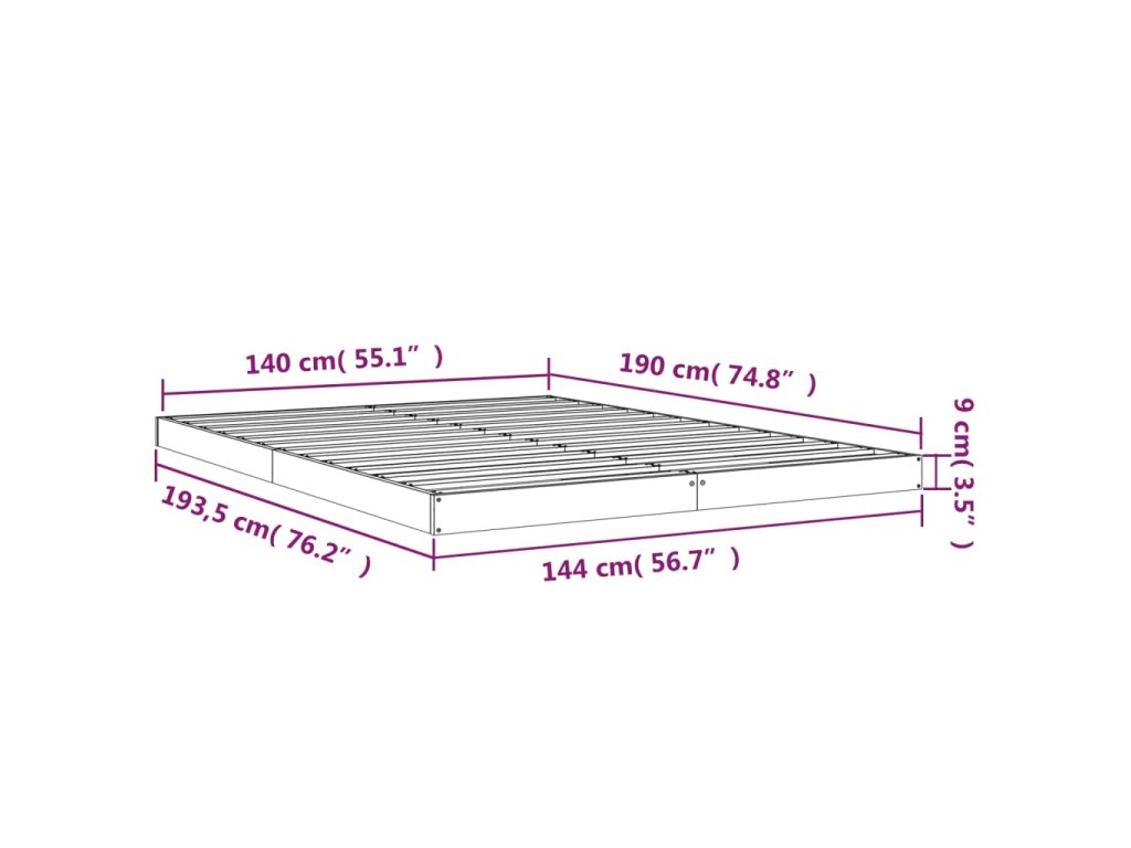 - Tento rám postele je vhodný pro matrace o rozměrech 140 x 190 cm.