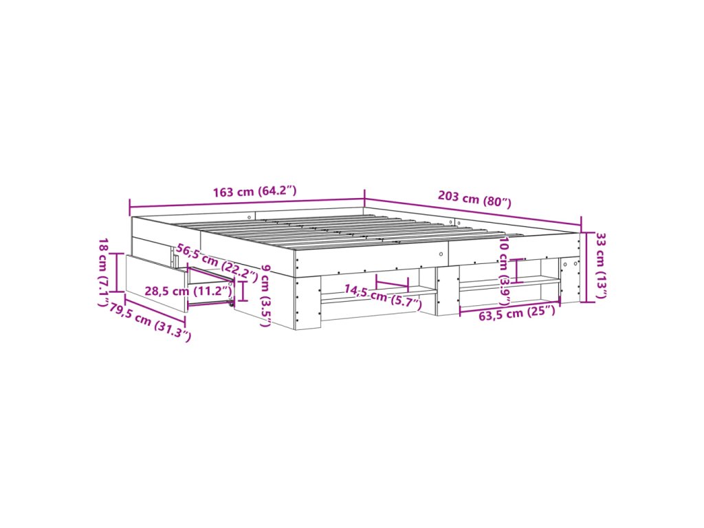 - Úložná funkce: Tento rám postele je vybaven zásuvkami a otevřenými přihrádkami, které vám poslouží k přehlednému uložení časopisů, knih, hraček a dalších drobných předmětů.