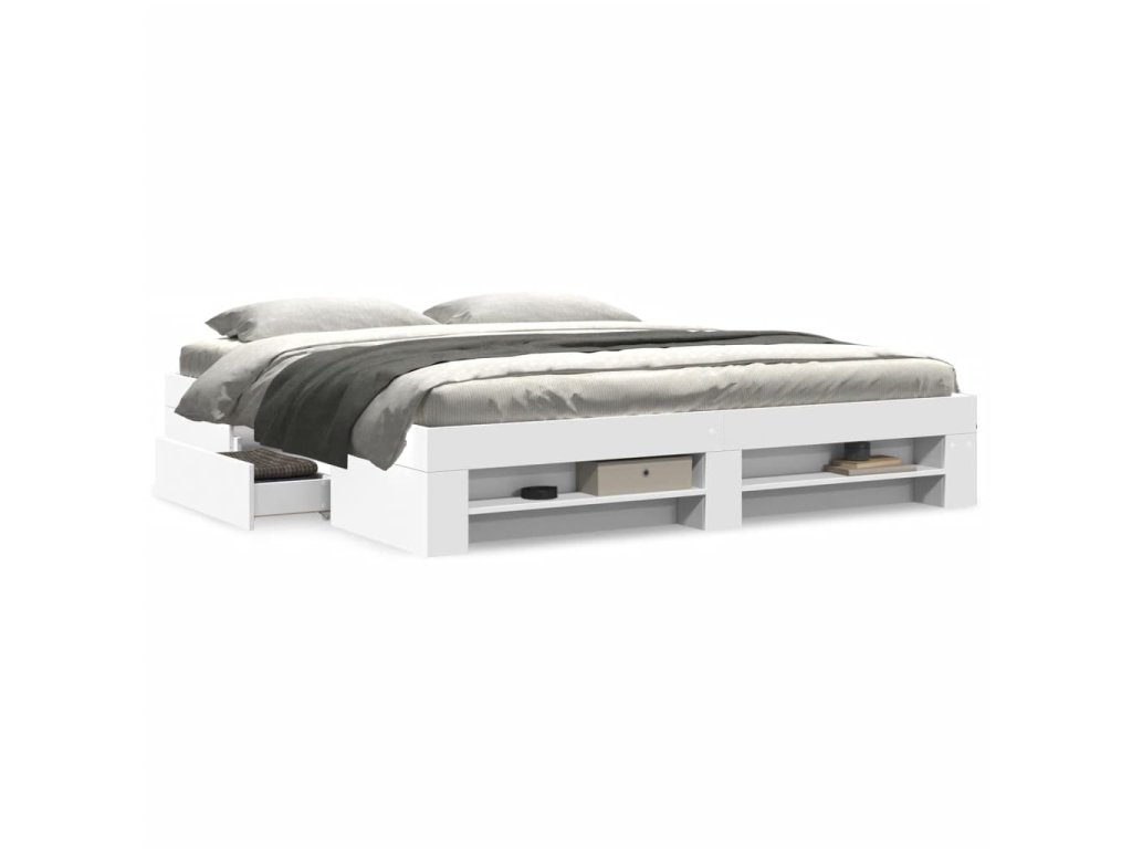 - Úložná funkce: Tento rám postele je vybaven zásuvkami a otevřenými přihrádkami, které vám poslouží k přehlednému uložení časopisů, knih, hraček a dalších drobných předmětů.