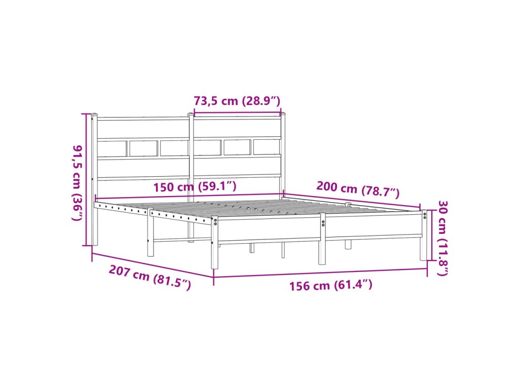 - Vhodné rozměry matrace: 150 x 200 cm (Š x D) (matrace není součástí balení)