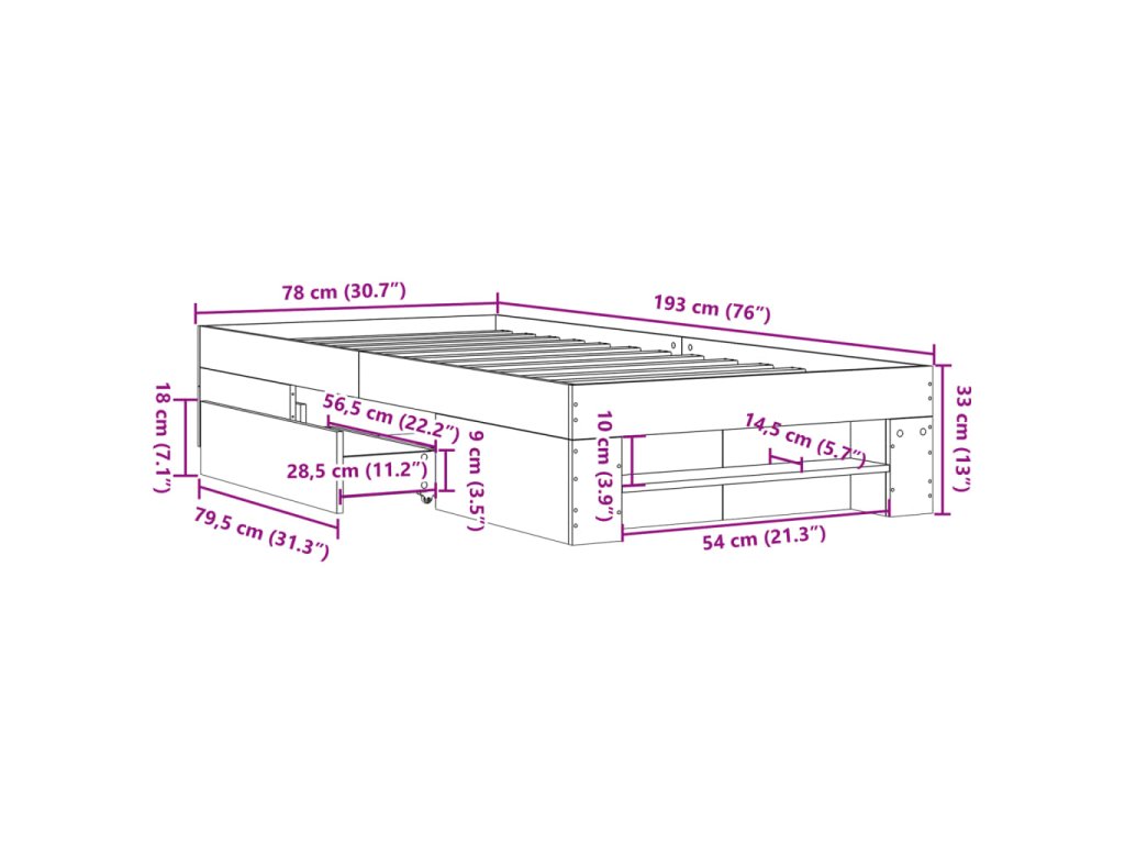 Rám postele bez matrace dub sonoma 75 x 190 cm kompozitní dřevo 3295529