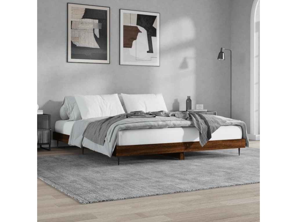 Rám postele bez matrace Hnědý dub 200x200 cm Dřevěné konstrukce 832220