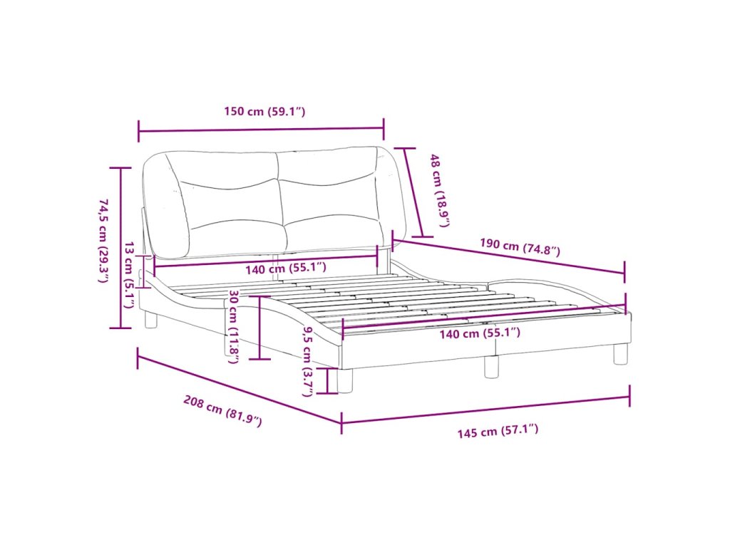- Vhodná velikost matrace: 140 x 190 cm (Š x D) (matrace není součástí balení)
