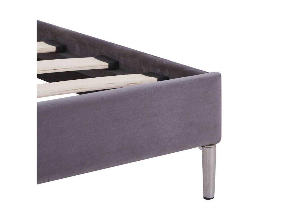 Rám postele se vyznačuje nenápadným, a přitom půvabným designem, který do vaší ložnice vnese elegantní šarm. Rám postele je vyrobený ze dřeva a železa, je tedy mimořádně pevný a má dlouhou životnost. Železné nohy dodávají posteli větší odolnost. Čalounění z odolného textilu se snadno čistí a posteli propůjčuje příjemný vzhled, který přímo láká k odpočinku. Tento rám postele je vhodný pro matrace o rozměrech 135 x 190 cm.