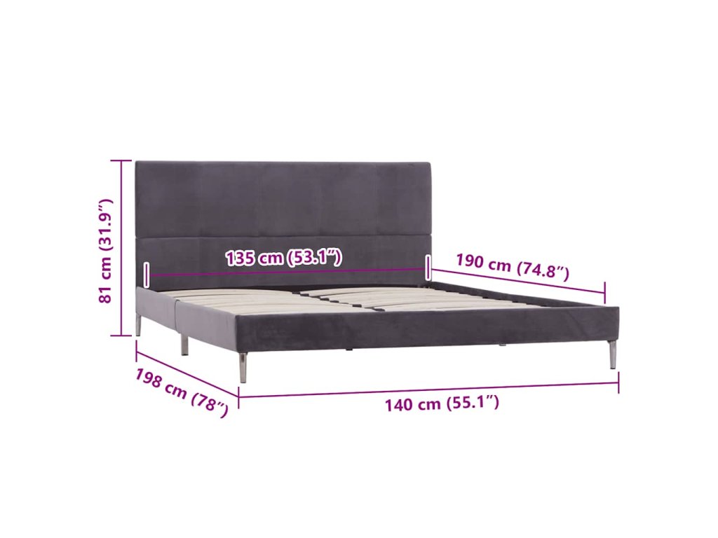 Rám postele bez matrace Šedá látka 135x190 cm 281128