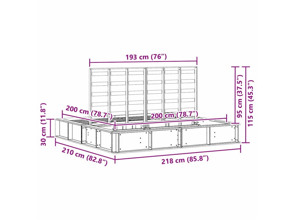 - Velikost matrace: Císařská postel (200 cm x 200 cm nebo 79" x 79")