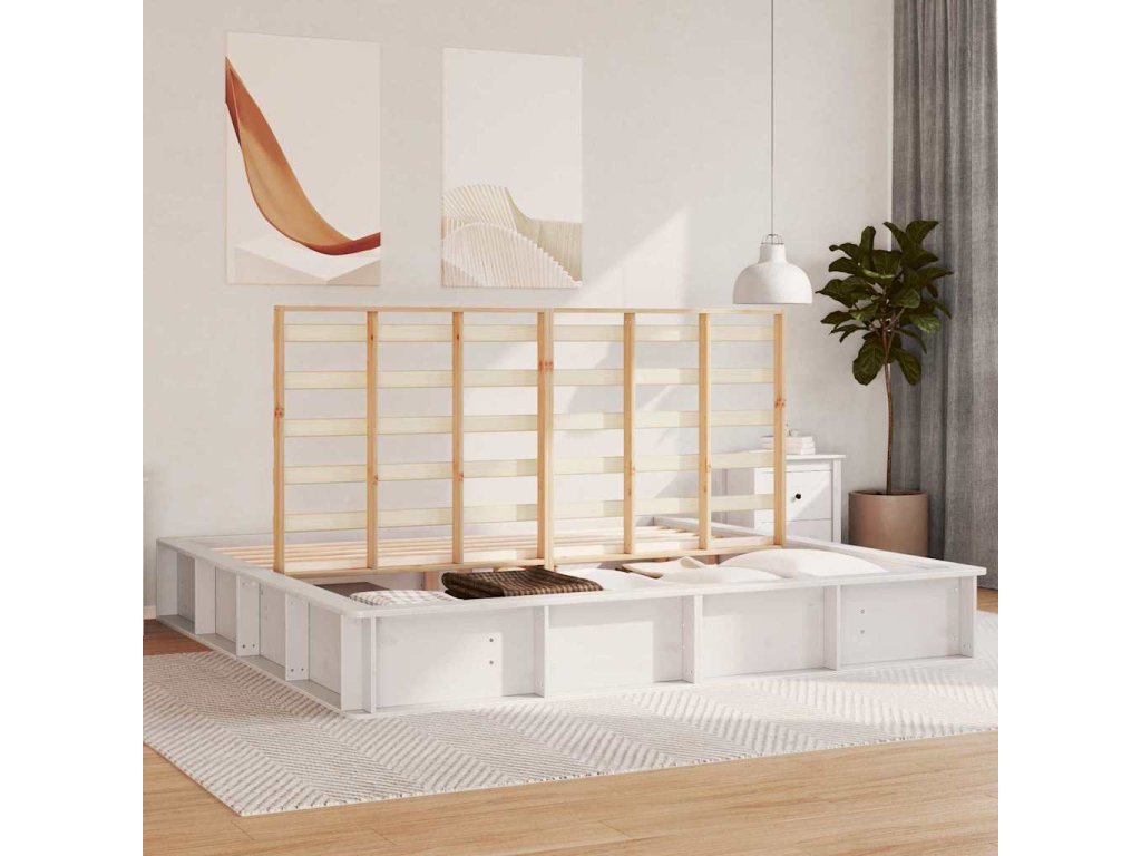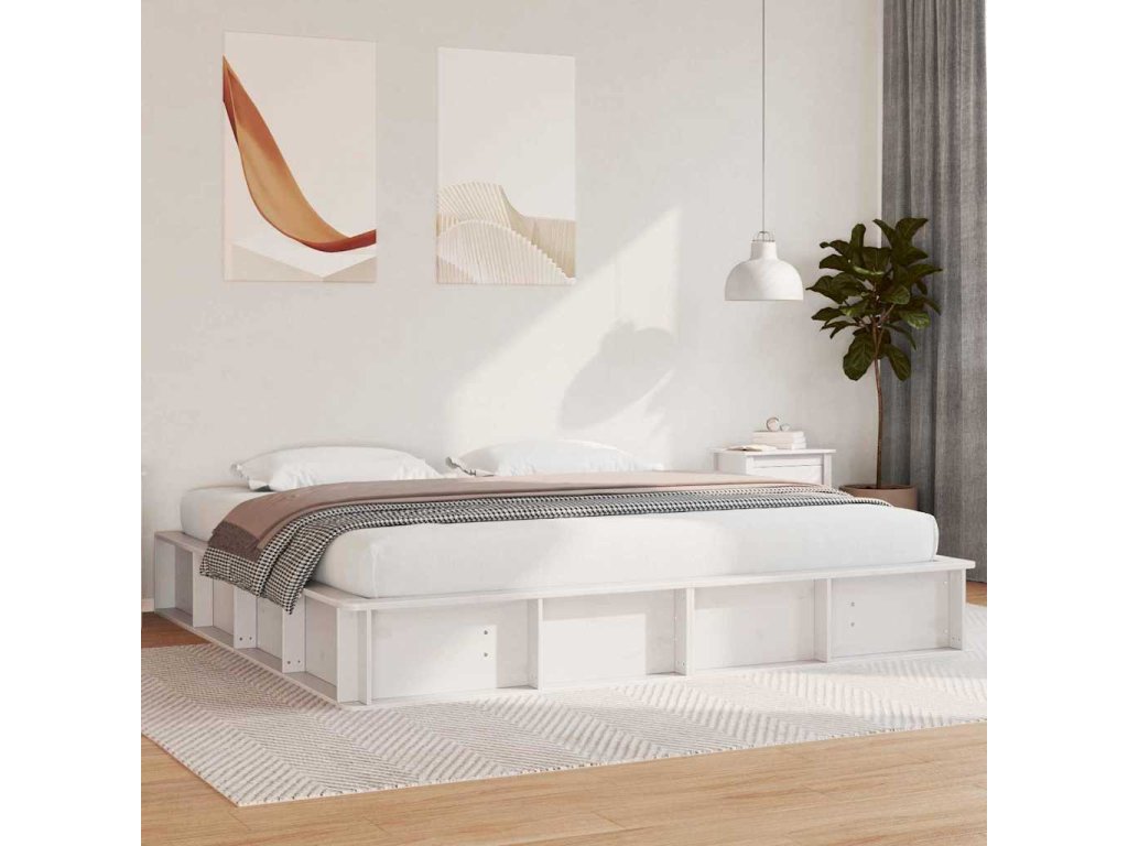 Rám postele Bílá 200 x 200 cm Masivní borové dřevo 3385704