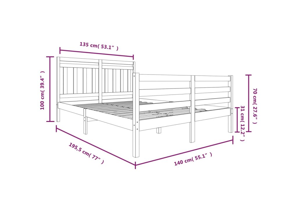- Celkové rozměry rámu postele: 195,5 x 140 x 100 cm (D x Š x V)