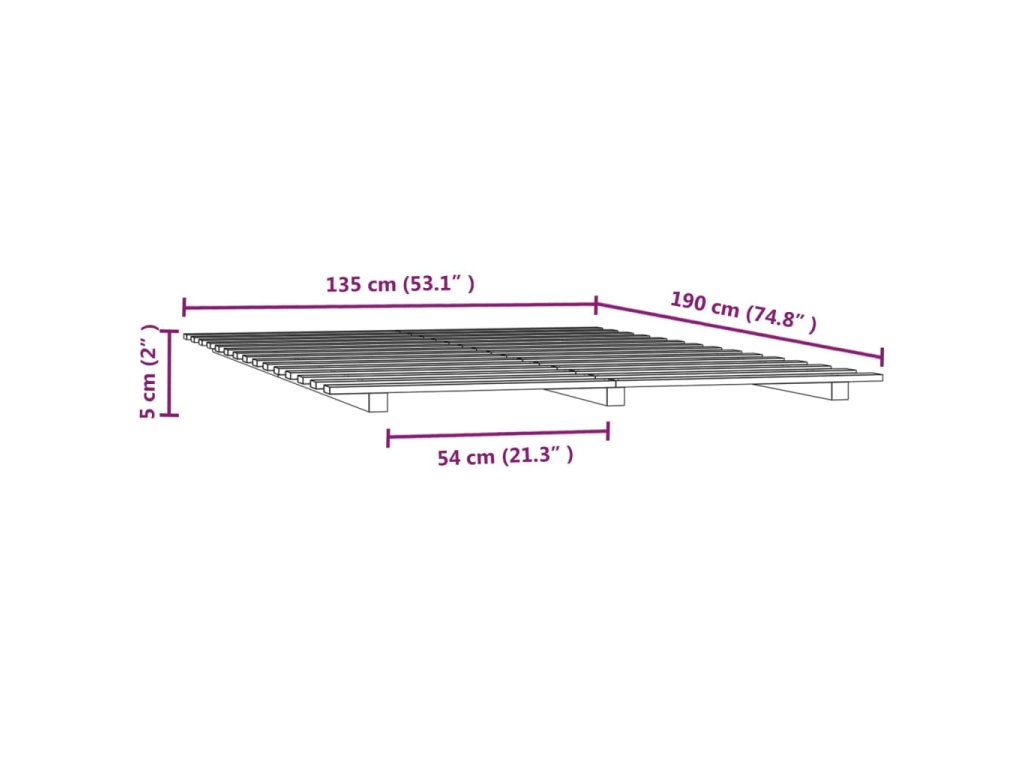 - Tento rám postele je vhodný pro matrace o rozměrech 135 x 190 cm.
