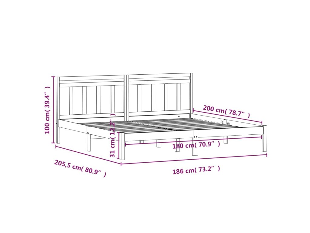 - Celkové rozměry rámu postele: 205,5 x 186 x 100 cm (D x Š x V)
