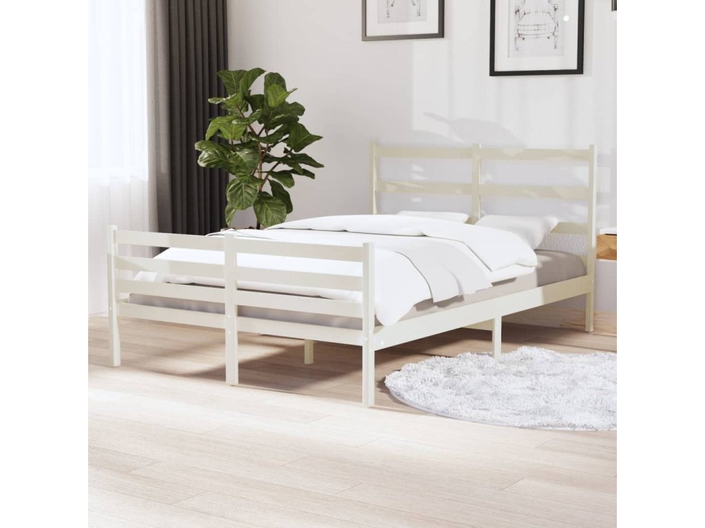Rám postele bílý masivní borovice 120 x 190 cm malé dvojlůžko 3103684