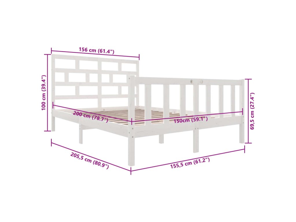 Rám postele bílý masivní borovice 150 x 200 cm King Size 3101354