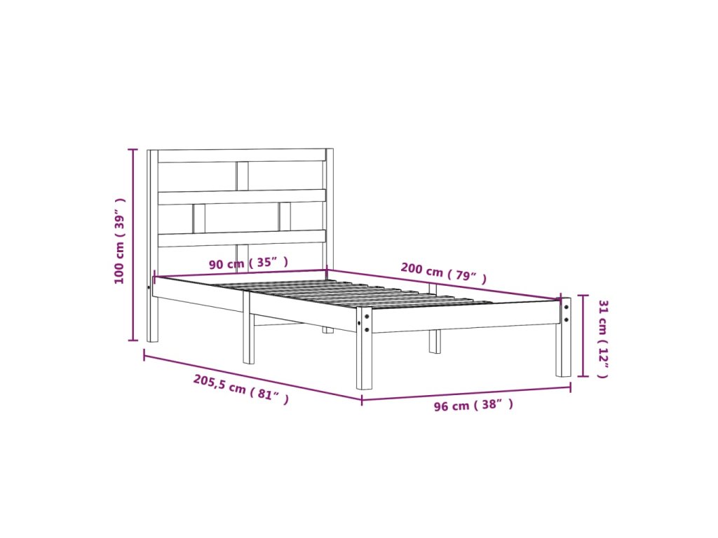 Rám postele bílý masivní borovice 90 x 200 cm 3101204