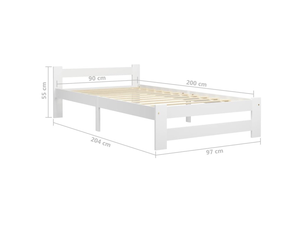 Rám postele bílý masivní borovice 90 x 200 cm 321998