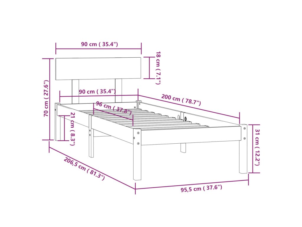 - Vhodné rozměry matrace: 90 x 200 cm (Š x D) (matrace není součástí balení)