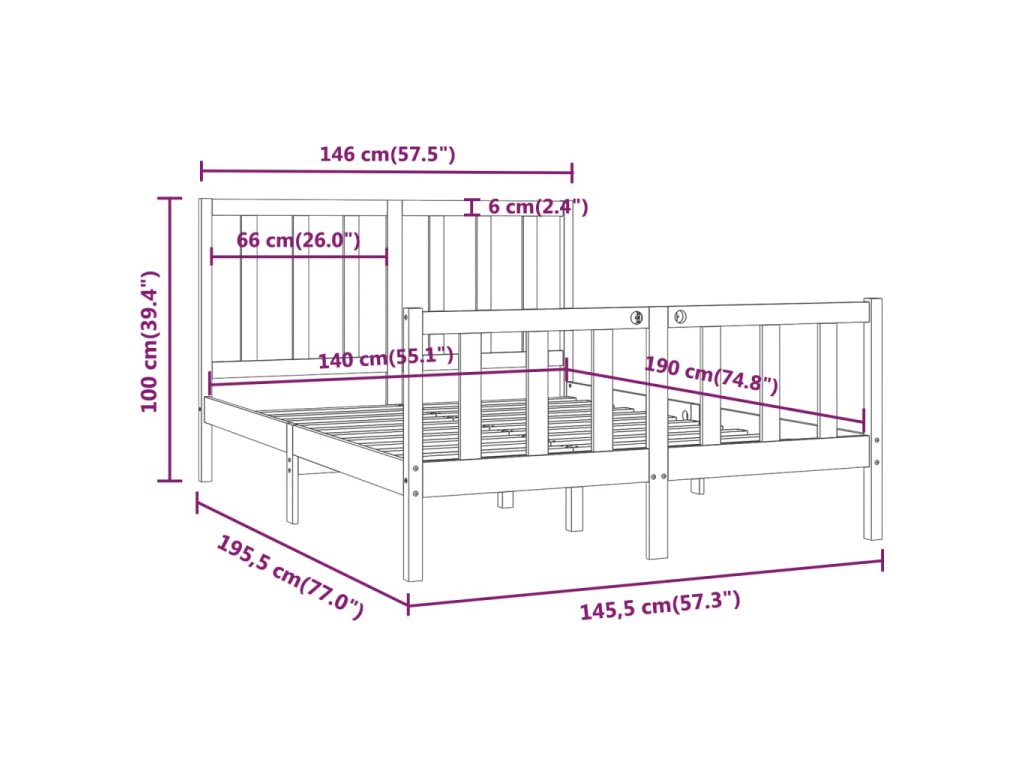 - Rozměry rámu postele: 195,5 x 145,5 x 69,5 cm (D x Š x V)