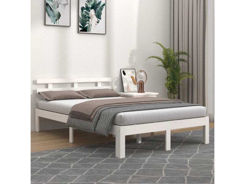 Rám postele bílý masivní dřevo 140 x 190 cm 814735